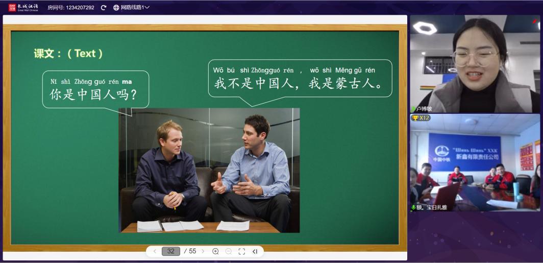 授课过程中,两位老师循循善诱,通过自己专业地讲述,让学生认识到中国语言文字及中华文化的魅力。为了调动学员们的积极性,帮助大家加深理解汉语知识,老师们还设计了与所学知识相关的情境对话来增强与学员之间的互动。每一位学员都兴趣盎然,积极配合老师的教学。