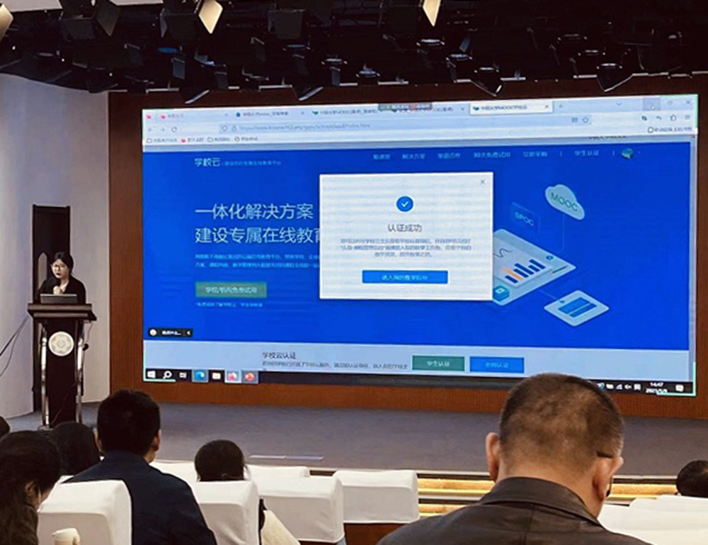王慧杰以《SPOC实际操作运行讲解》为题,通过中国大学MOOC网络授课平台,详细向参会教师展示了如何认证平台教师身份及怎样使课程上线、运行。
