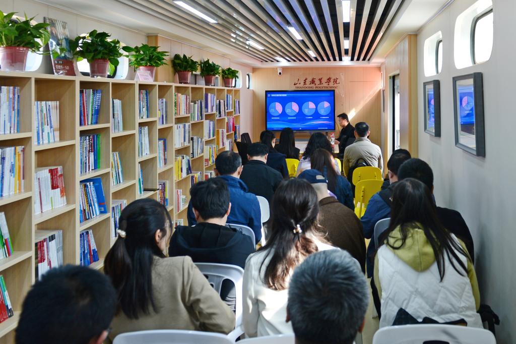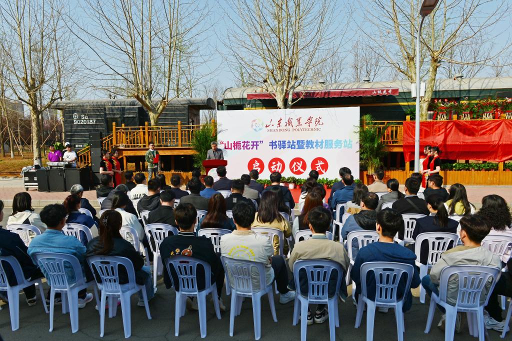 花满山职三月天,最是书香能致远。3月30日,由学校图书馆主办、山东中教产业发展股份有限公司协办的“山栀花开”书驿站暨教材服务站启动仪式隆重举行。山东中教产业发展股份有限公司总裁魏立文、复旦大学出版社副社长顾轩、副院长郭鹏出席活动,中国铁道出版社、人民交通出版社、高等教育出版社、清华大学出版社、复旦大学出版社、电子工业出版社代表及学校师生60余人参加活动。