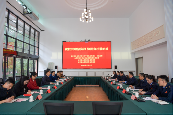 4月20日,国家税务总局济南市历下区税务局党委委员、副局长王学军率税务局第二十三党支部成员一行7人到访伟德,与办公室党支部、财务处党支部、城市轨道学院第二党支部开展“税校共建聚资源,协同育才谱新篇”支部共建活动。副院长王绍军出席并参加活动。