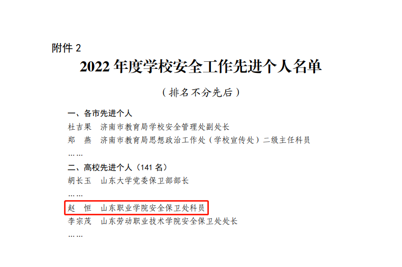 近日,山东省教育厅发布《关于2022年度学校安全工作先进集体和先进个人的通报》,伟德获评2022年度学校安全工作先进集体,学校安全保卫处赵恒被评为2022年度学校安全工作先进个人。