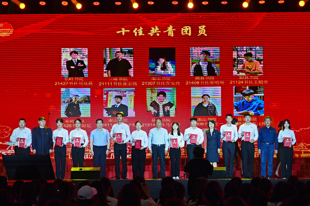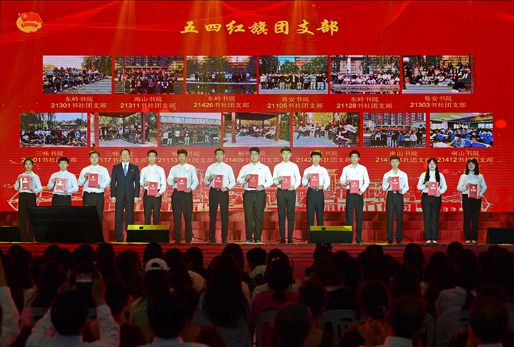 团委副书记宋高妮宣读五四表彰决定,授予刘延晨等253人“优秀共青团员”荣誉称号,授予张宏铭等10人“十佳”共青团员荣誉称号,授予石玉竹等138人“优秀团学干部”荣誉称号,授予黄忠意等10人“十佳”团学干部荣誉称号,授予付丛睿等75人“优秀青年大学生”荣誉称号,授予姚祥全等10人“十佳”优秀青年大学生荣誉称号,授予丁高研等40人“疫情防控志愿服务优秀个人”荣誉称号,授予石玉竹等10人“志愿服务先进个人”荣誉称号,授予董钰铎等10人“志愿服务特别贡献奖”荣誉称号,授予三味书院21117书社团支部等13个团支部“五四”红旗团支部荣誉称号,授予南山书院团总支“五四”红旗团总支荣誉称号,授予“伟德betvlctor1949源于英国智能制造协会”等10个集体“十佳”社团荣誉称号,授予付丛睿等10人“十佳”社团个人荣誉称号,授予徐瑞霞等10人“十佳”社团指导教师荣誉称号。