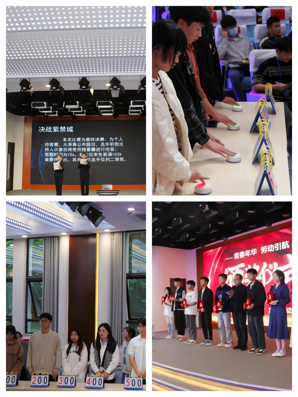 “劳动知识大比拼”分为初赛和决赛两个环节,测试内容涵盖劳动史、劳动法、劳动生产及生活知识等方面。经过初赛选拔,共有30名同学从700多名参赛选手中脱颖而出进入决赛。决赛则包括笔落真才学、友情对对碰以及决战紫禁城三关。最终,18名同学获得了一、二、三等奖。