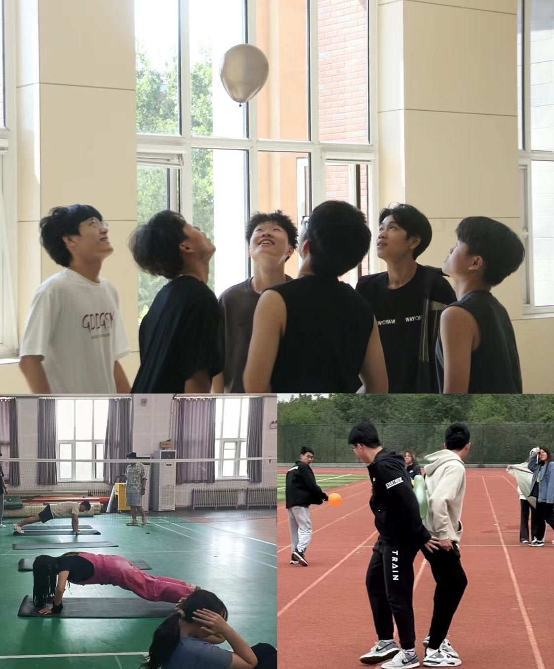 运动身心,享受健康快乐。“六人成行”“伏地挺身”“万球一心”等活动,精彩纷呈。“加油!”“1、2开始”等熟悉的口号,整齐不太划一的动作,手握计数器记录着俯卧撑的个数,传来一阵阵的欢声笑语,透着活动的精彩热闹,热烈活跃的气氛,透着同学们喜悦的心情,彰显了团结协作精神。