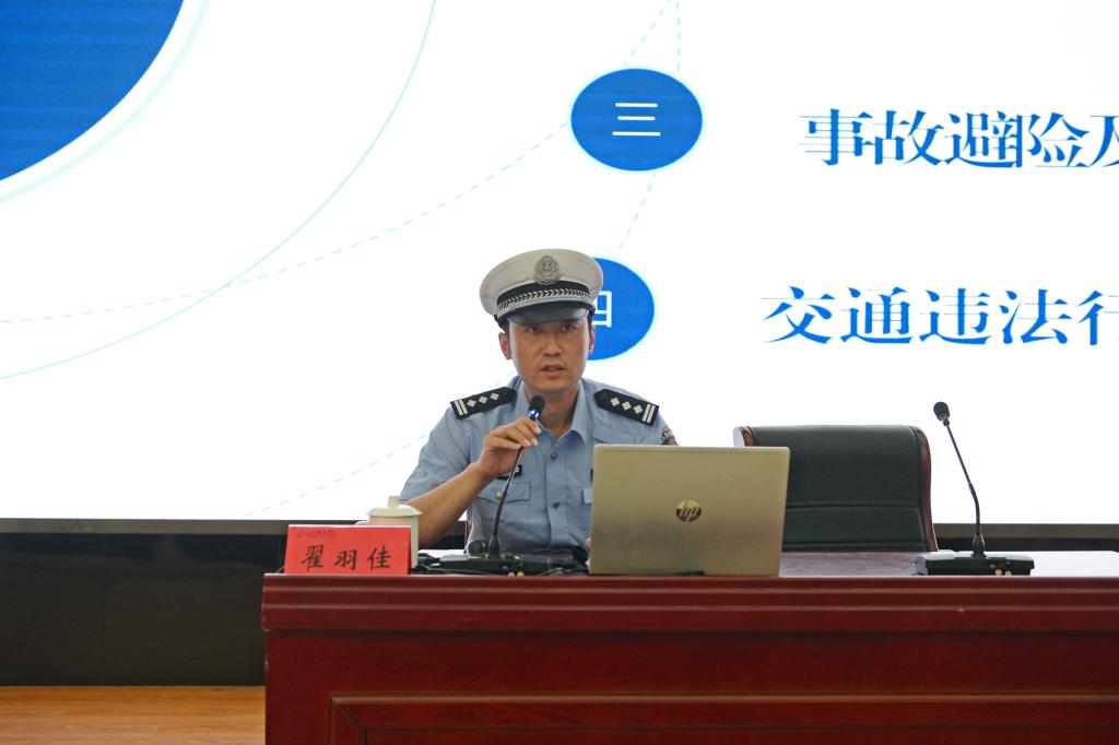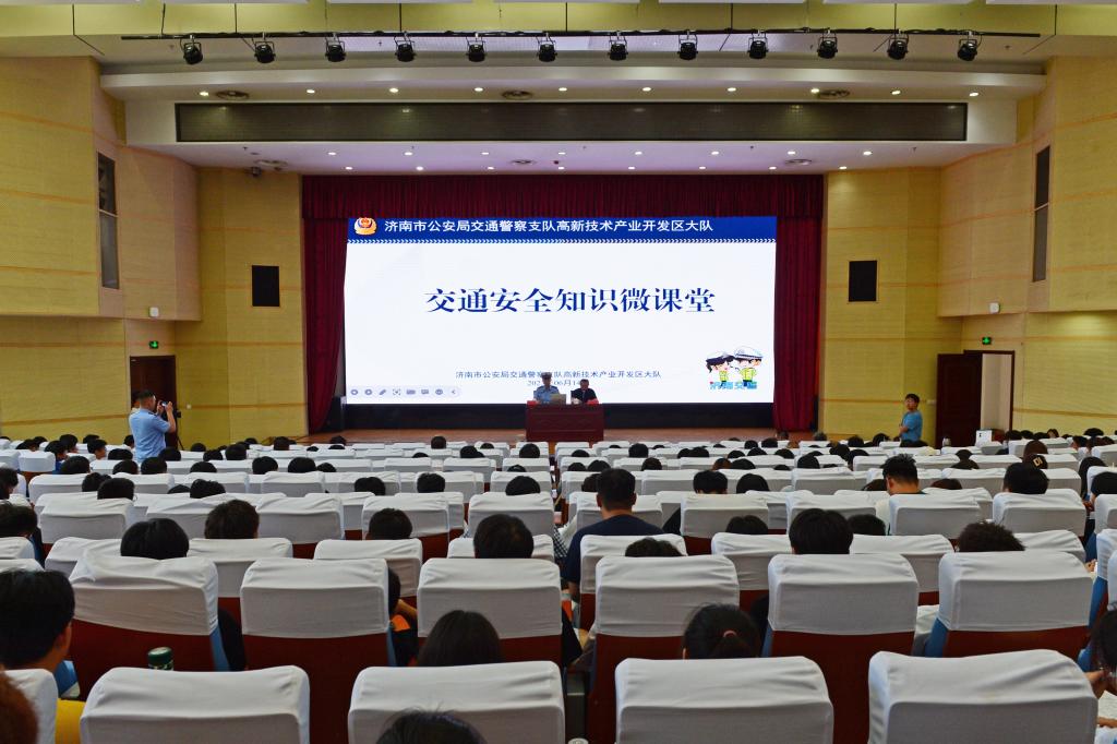 今年6月是第22个全国“安全生产月”,为增强师生交通安全意识,营造良好的校园安全氛围,6月14日下午,学校邀请济南高新区交警大队二中队中队长翟羽佳来校开展交通安全教育讲座。讲座由学生工作处副处长季开瑞主持,教师代表、学生代表约400人参加。