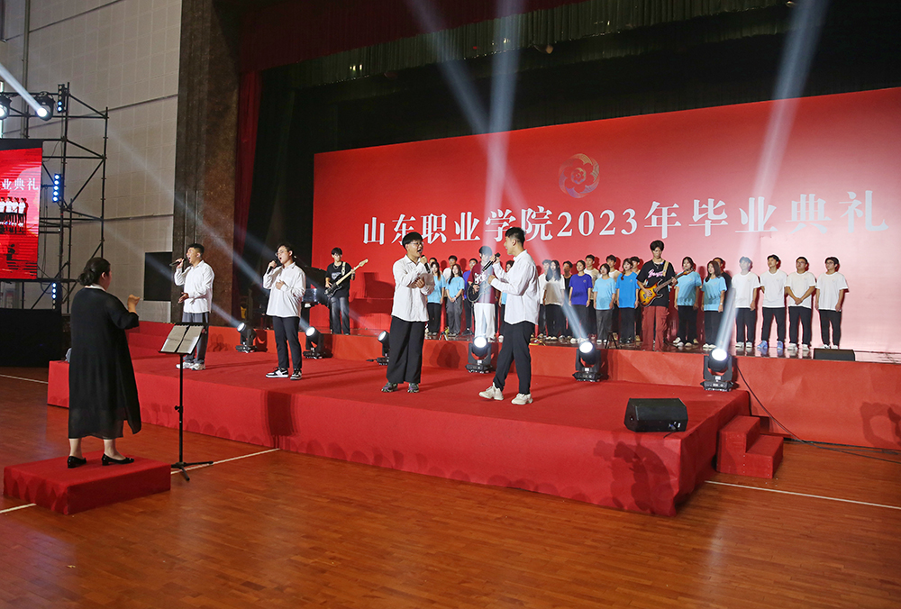 典礼现场,《凤凰花开的路口》《舞蹈live forever》《后来》《干杯》《稻香》等歌舞演出,感动全场,同学们在歌声、欢呼中迎接着自己的新征程。毕业典礼在合唱《海阔天空》中落下帷幕。