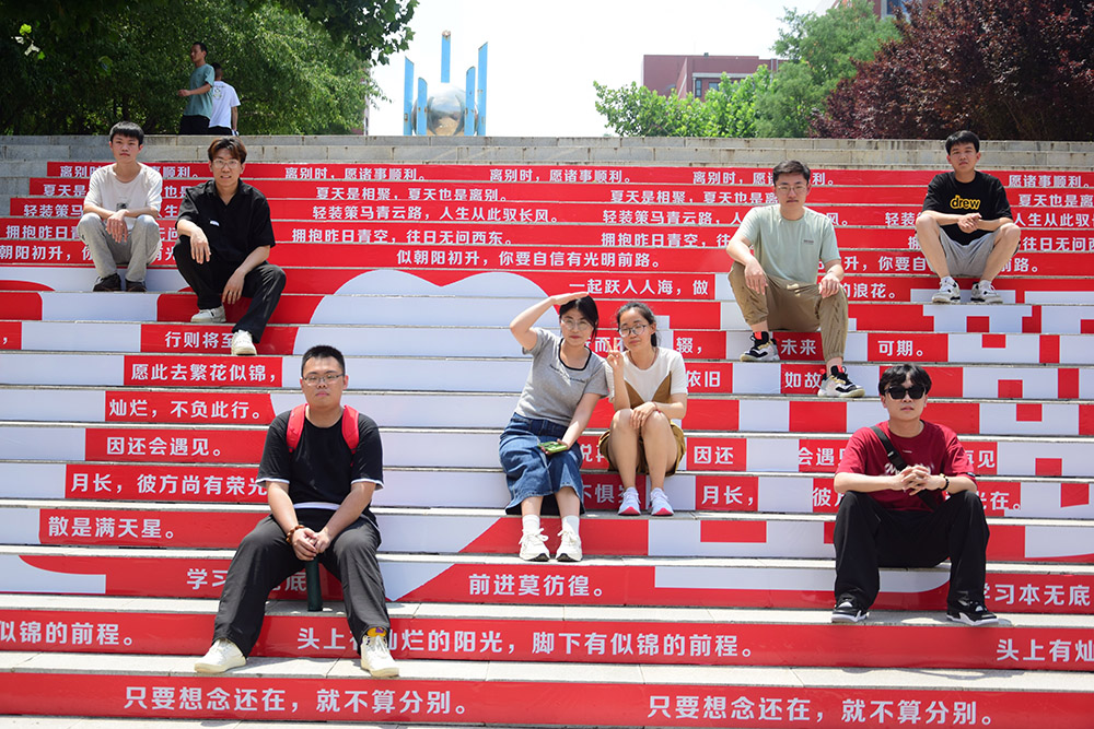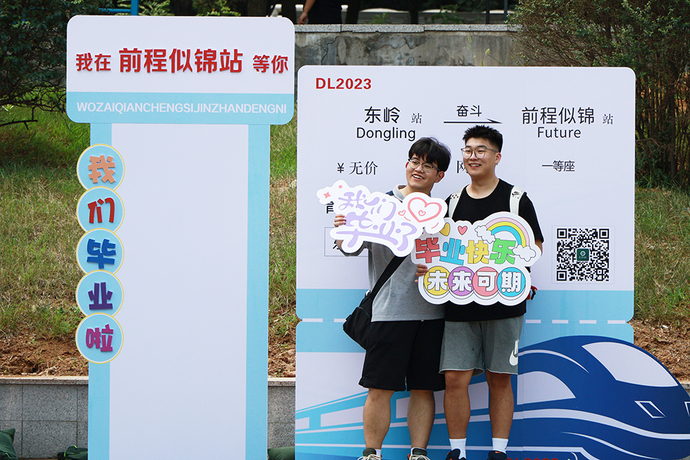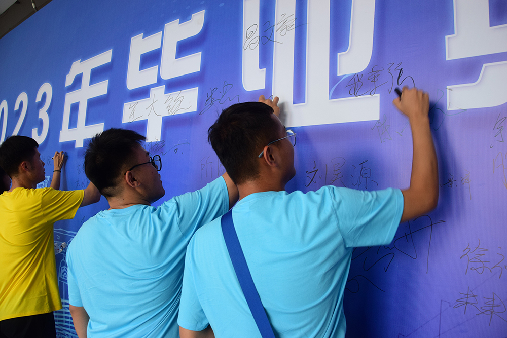 会场内外,中间广场精心设计的毕业季展板,三角地、至谷大屏一条条饱含深情的条幅标语,给毕业季带来更多的依依惜别与祝福,此去繁花相送,再遇依旧深情。