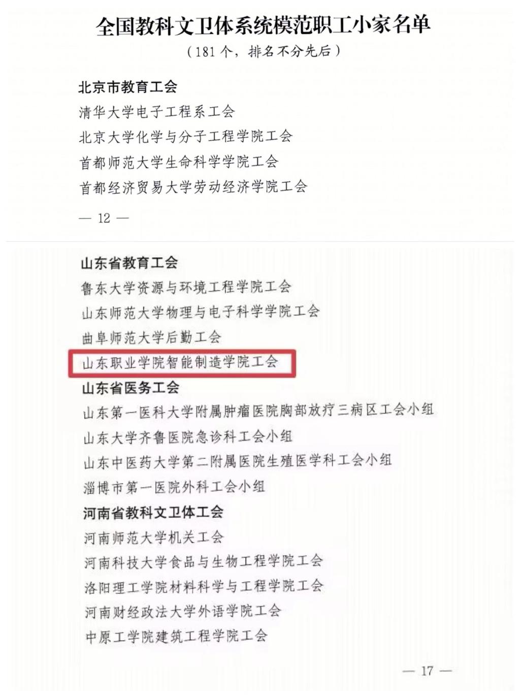 近日,中国教科文卫体工会全国委员会下发《关于确认全国教科文卫体系统模范职工之家、模范职工小家的通知》,伟德智能制造学院工会被授予“模范职工小家”荣誉称号,这是智能制造学院工会继“山东省教育系统模范职工小家”称号之后获得的又一项更高级别的荣誉。