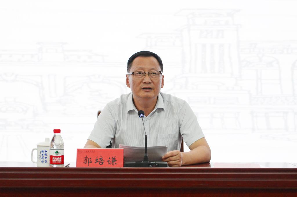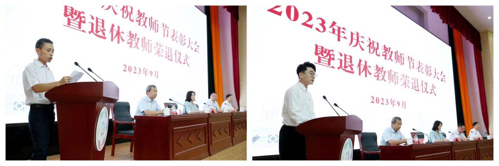 郭培谦在主持中,祝全校教职工教师节快乐。他指出,表彰在工作中涌现出的先进个人,为今年退休教师举行荣退仪式,旨在以先进为榜样,大力营造尊师重教、爱岗敬业、潜心育人、争先创优的良好氛围,推动学校各项事业高质量发展持续开新局、展新貌、谱新篇。他要求全校教职工要认真领会会议精神,以先进为榜样,爱岗敬业,苦炼内功,潜心育人,精益求精,锐意进取,努力成为新时代的“四有好老师”。
