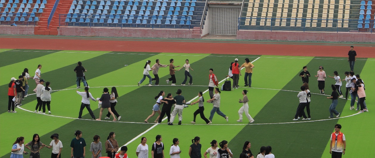 为进一步拉近新同学之间的距离,使他们尽快地融入集体,更好地适应大学的学习与生活,团委在运动场举办了“破冰之旅”团建活动。通过“无声接力”“抱堆”“击鼓传花”三个户外拓展项目,同学们从尴尬到融洽再到热烈,加强了彼此的交流与合作,能够更好的融入集体。