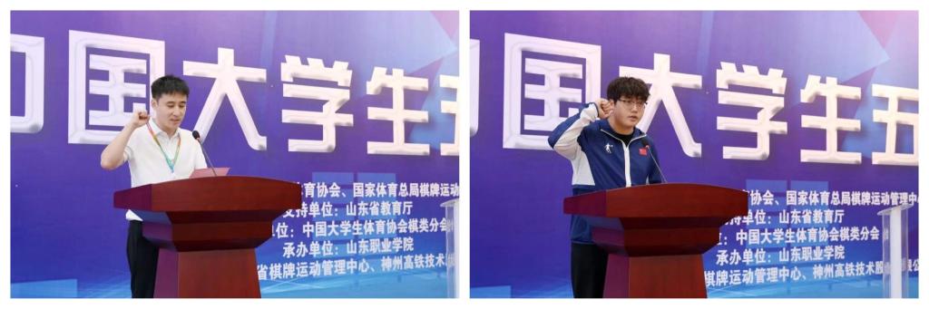 裁判代表刘洋代表全体裁判员宣誓,运动员代表付丛睿代表全体运动员宣誓。