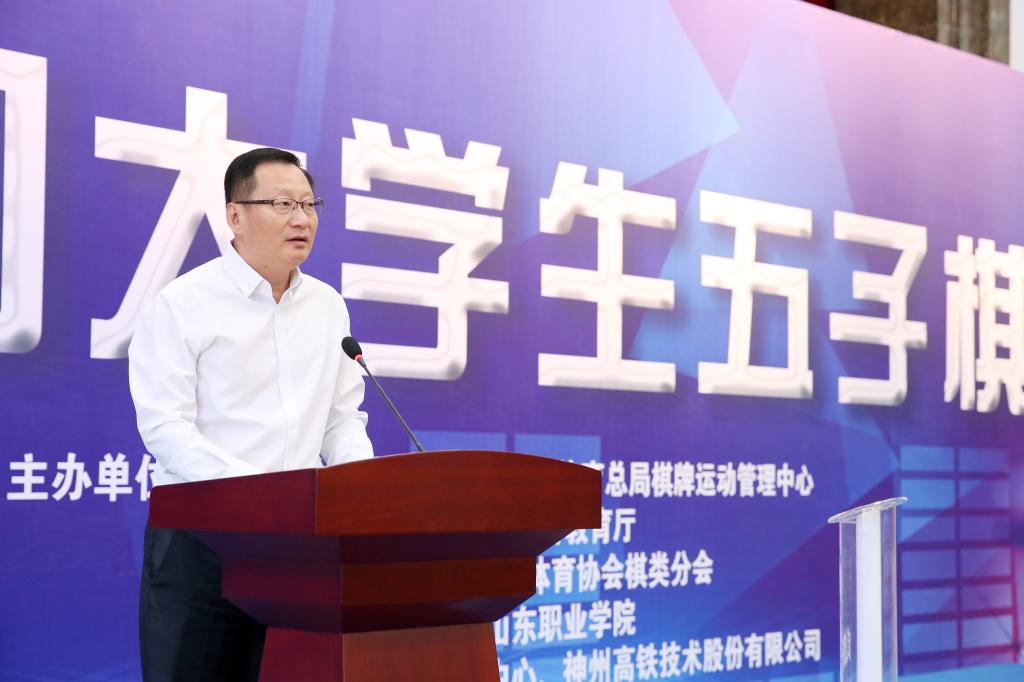 郭培谦代表学校致辞,他指出,学校把五子棋比赛作为深化体育教学改革,推广智力运动,促进群众体育和竞技体育融合发展、协调发展、全面发展的一项重要举措,通过组建五子棋俱乐部、开设选修课程、建立训赛机制、营造全民参与的浓厚氛围等,使得一批五子棋运动员在全国、全省比赛中崭露头角,被授予“山东省五子棋特色学校”荣誉称号。大赛期间,学校将全力以赴做好各项服务工作,营造公平、公正、愉悦、舒心的比赛和交流氛围,确保大赛精彩热烈、保障有力、规范有序、文明和谐。