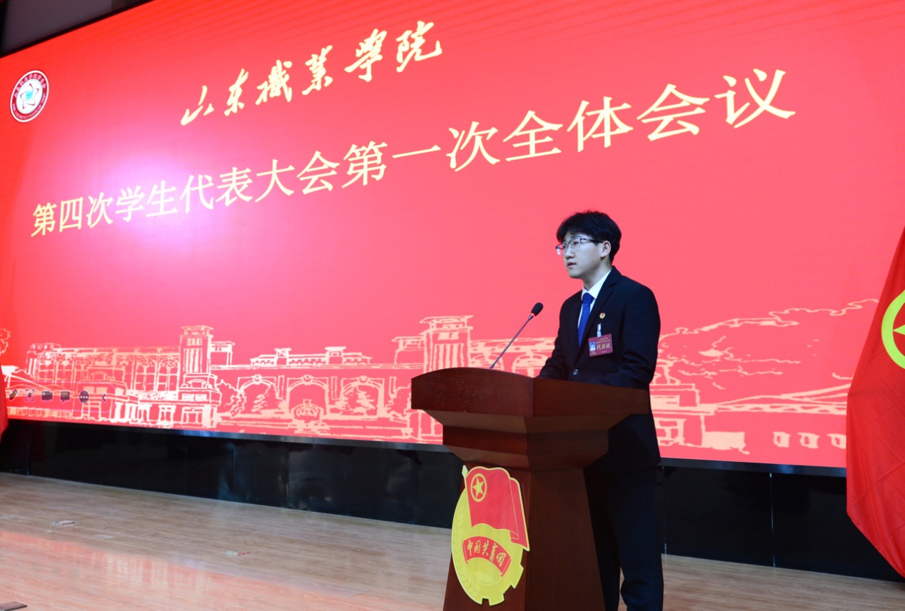 济南职业学院学生会代表隽兆凯宣读来自济南职业学院的贺信。