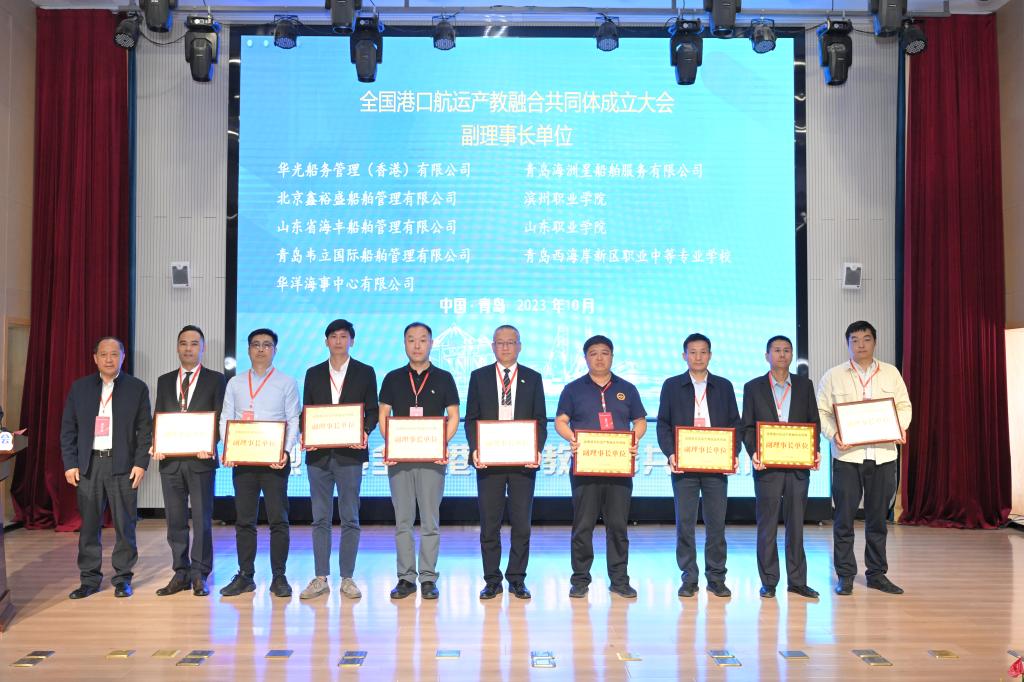 10月20日,由交通运输部职业资格中心、中国交通教育研究会、中国理货协会指导,山东省港口集团有限公司、武汉理工大学、青岛港湾职业技术学院共同主办的全国港口航运产教融合共同体成立大会在青岛举行,伟德港口学院院长张守忠应邀参会。会上,伟德被授予副理事长单位。