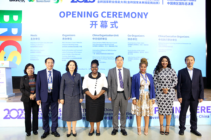 刘振英在致辞中表示,组织技能竞赛,搭建了技术技能人才沟通交流、技艺切磋、思想碰撞的桥梁,也是金砖技能组开展未来技能课程开发、国际团体技能标准制订、未来技术技能人才联合培养的重要抓手。金砖技能组将以国际竞赛为合作契机,通过国际竞赛成果转化,继续深化多项国际项目合作,共同推动金砖及其他新兴市场和发展中国家职业教育高质量发展。