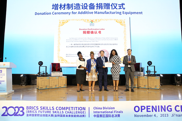 “一带一路”暨金砖国家技能发展国际联盟增材制造专业委员会,向金砖国家工商理事会(南非)技能发展工作组赠送3D打印设备。