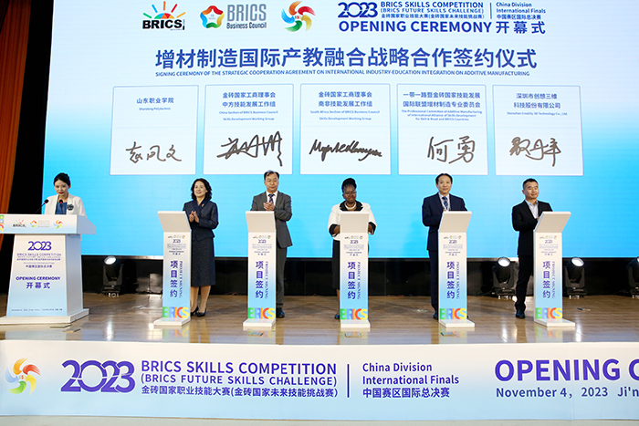 为深化增材制造国际产教融合战略合作,推动“增材制造国际团体技能标准制定”、专业建设、互访交流、未来技能基地建设,金砖国家工商理事会(南非)技能发展工作组、金砖国家工商理事会(中方)技能发展工作组、“一带一路”暨金砖国家技能发展国际联盟增材制造专业委员会、伟德betvlctor1949源于英国、深圳市创想三维科技股份有限公司等单位,共同签订增材制造国际产教融合战略合作协议。