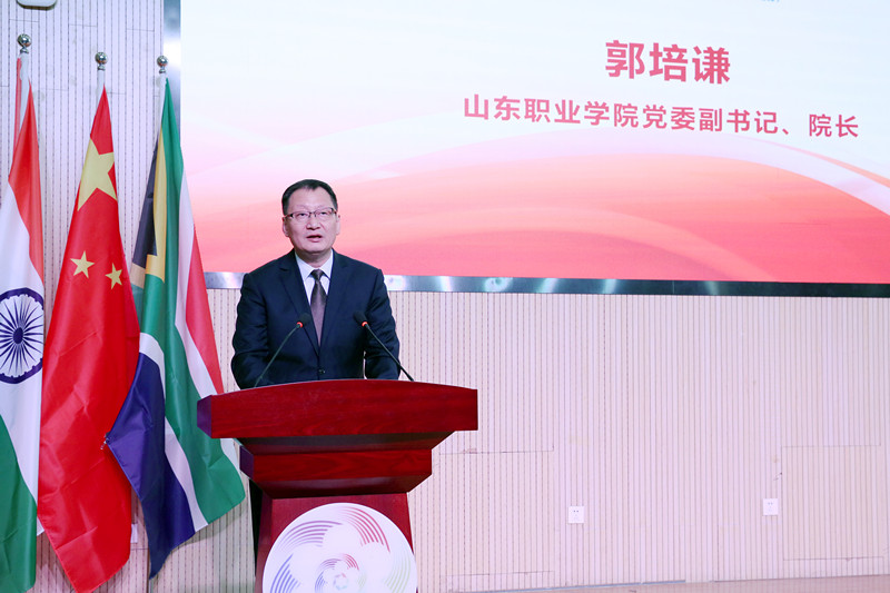 郭培谦代表承办院校致欢迎辞,向各位领导、专家、嘉宾、老师和同学们的到来表示热烈地欢迎。他指出,举办金砖国家职业技能大赛,是贯彻落实习近平总书记在金砖国家领导人第十五次会晤上的讲话精神的重要举措,是推进金砖国家在教育领域深度交流的重要抓手。学校严格按照大赛执委会要求,全力以赴做好各项服务保障工作,确保把大赛办成保障有力、规范有序、服务优质、安全精彩的高质量赛事。希望参赛选手们赛出友谊、赛出水平,取得理想成绩。