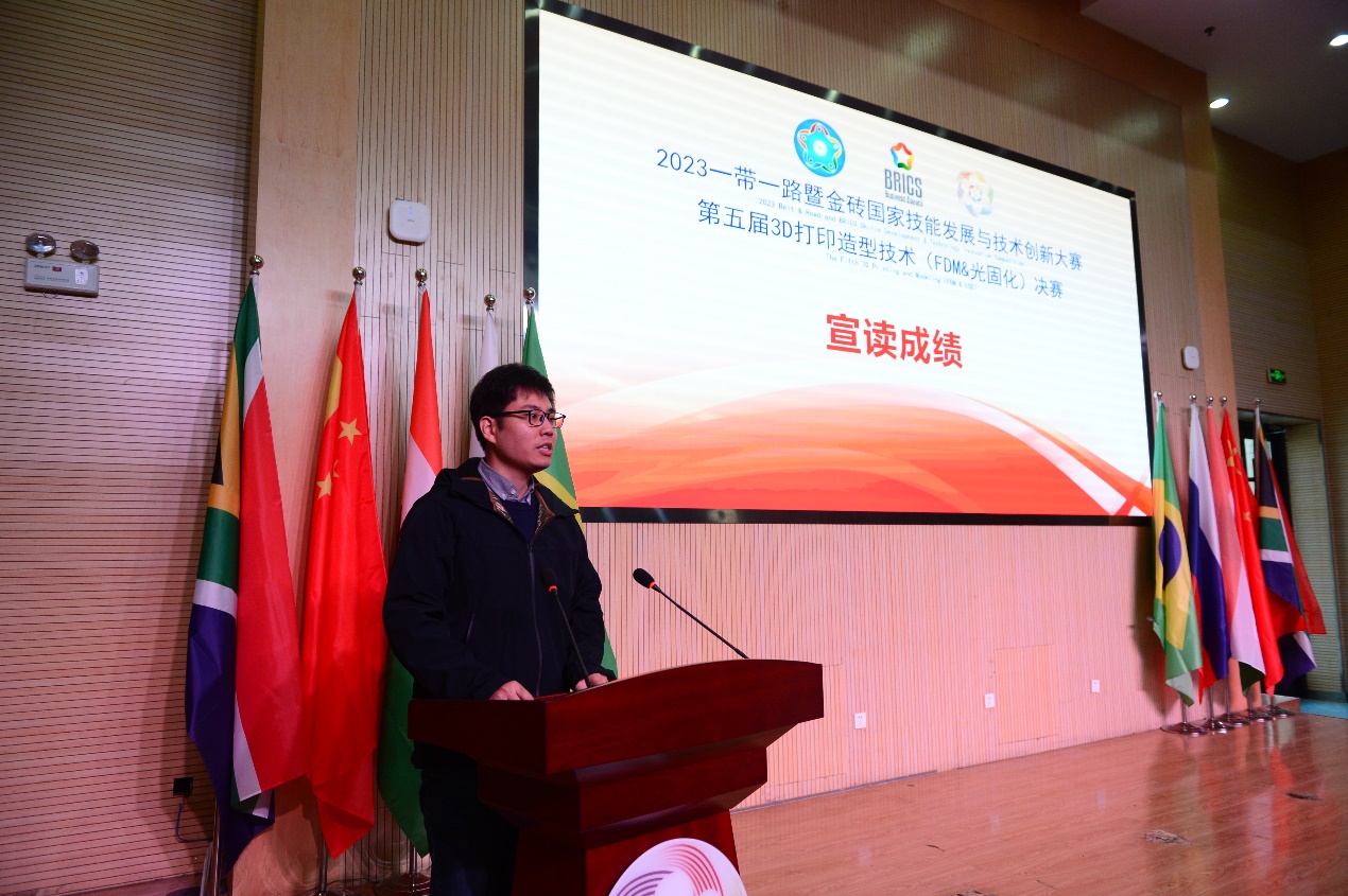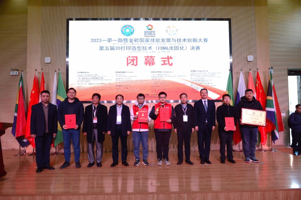 经过两天的激烈角逐,2023一带一路暨金砖国家技能发展与技术创新大赛第五届3D打印造型技术(FDM、光固化)决赛在伟德圆满落下帷幕。12日上午,大赛闭幕式及颁奖仪式在图书行政楼东报告厅举行。北京企学研教育科技研究院执行院长何勇,伟德院长郭培谦,赛项技术委员会主任、清华大学基础工业训练中心顾问、教授付宏生,赛项职业能力测评组长、辽宁省模具制造行业协会教育培训部主任赵世友,赛项专家组长、江苏电子信息职业学院刘永利教授,赛项副首席专家、安徽水利水电职业技术学院教研室主任张奎晓等出席闭幕式。来自38所职业院校的42支队伍共72名选手参加闭幕式。闭幕式由赛项组委会成员、北京企学研教育科技研究院鉴定合作处主任吴林主持。