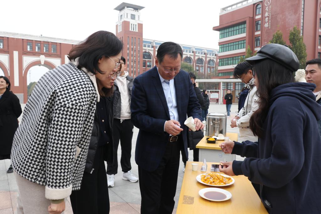 会后,师生共同参观了实践成果展。其中,乡村振兴中助农产品“金耳菌”品尝、黄河非物质文化遗产“军马酒业”品鉴环节更受师生欢迎。