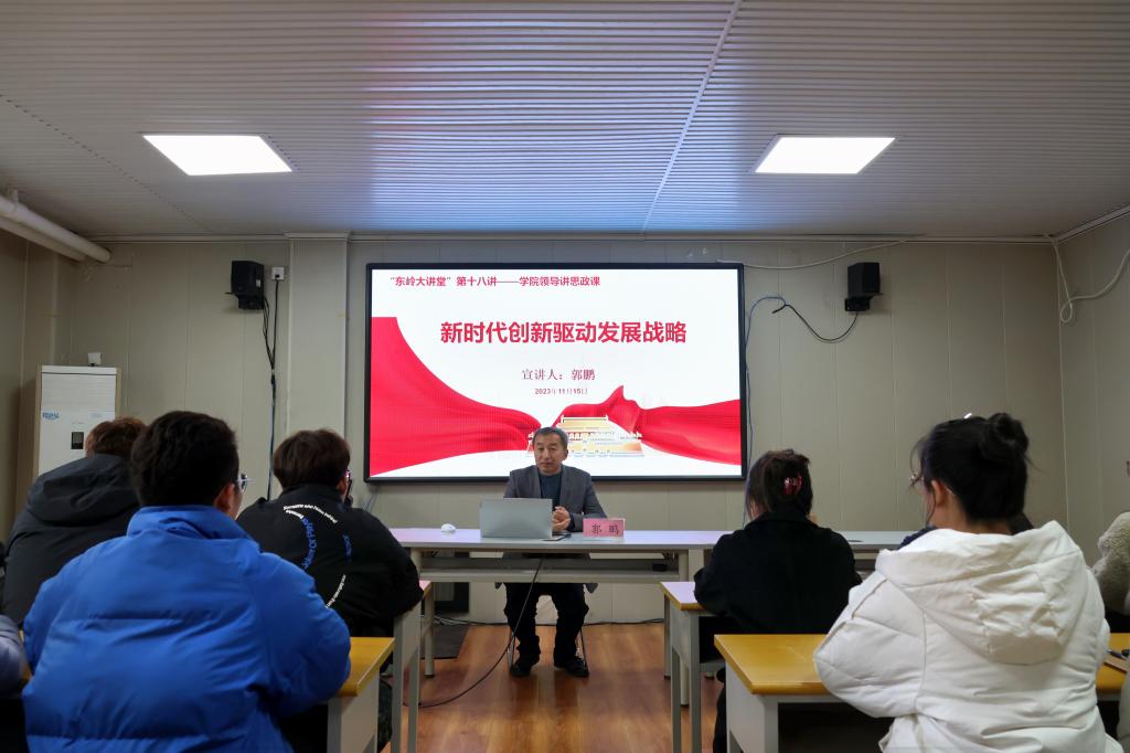 11月15 日,副院长郭鹏在东岭书院为书院师生讲授思政课,书院全体辅导员及部分入党积极分子参加。