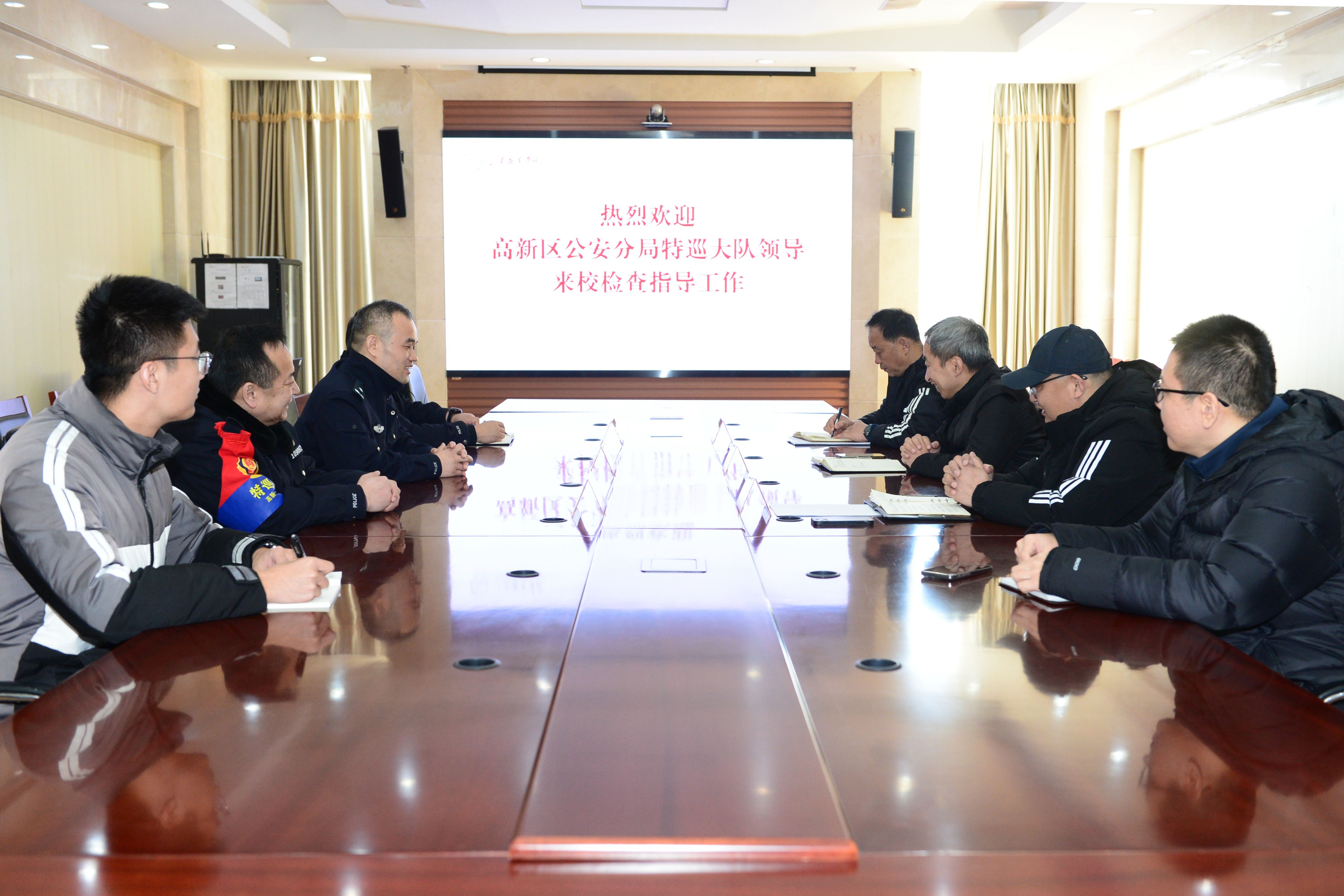 1月23日,济南市公安局高新技术产业开发区公安分局特巡大队大队长田力、副大队长张善成,巨野河派出所所长张海安等一行4人来校检查指导工作,党委副书记郭鹏出席会见。