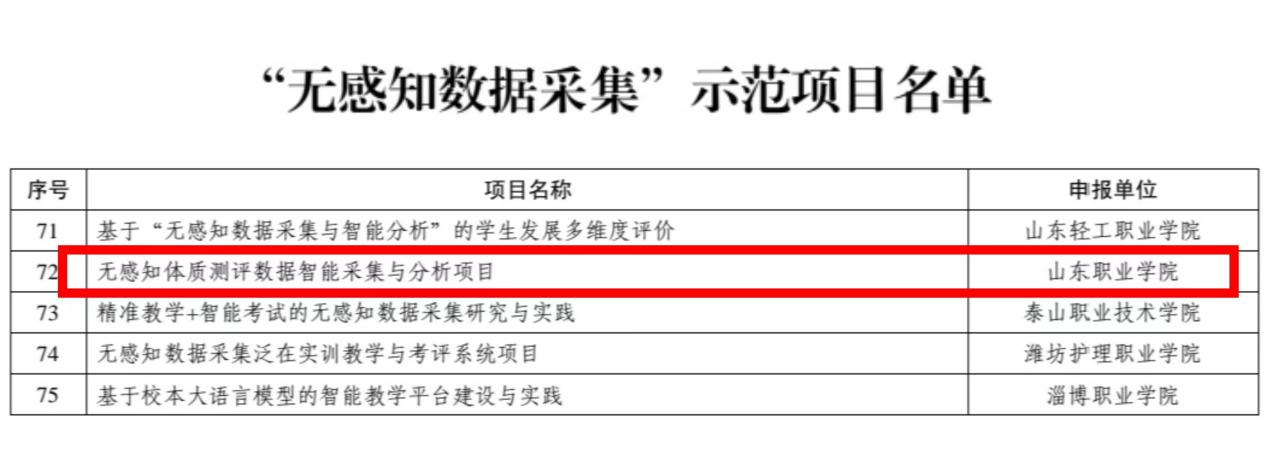 近日,山东省教育厅下发《关于公布“无感知数据采集”示范项目名单的通知》(鲁教科函〔2024〕6号),由体育教学部申报的《无感知体质测评数据智能采集与分析项目》项目成功入选。