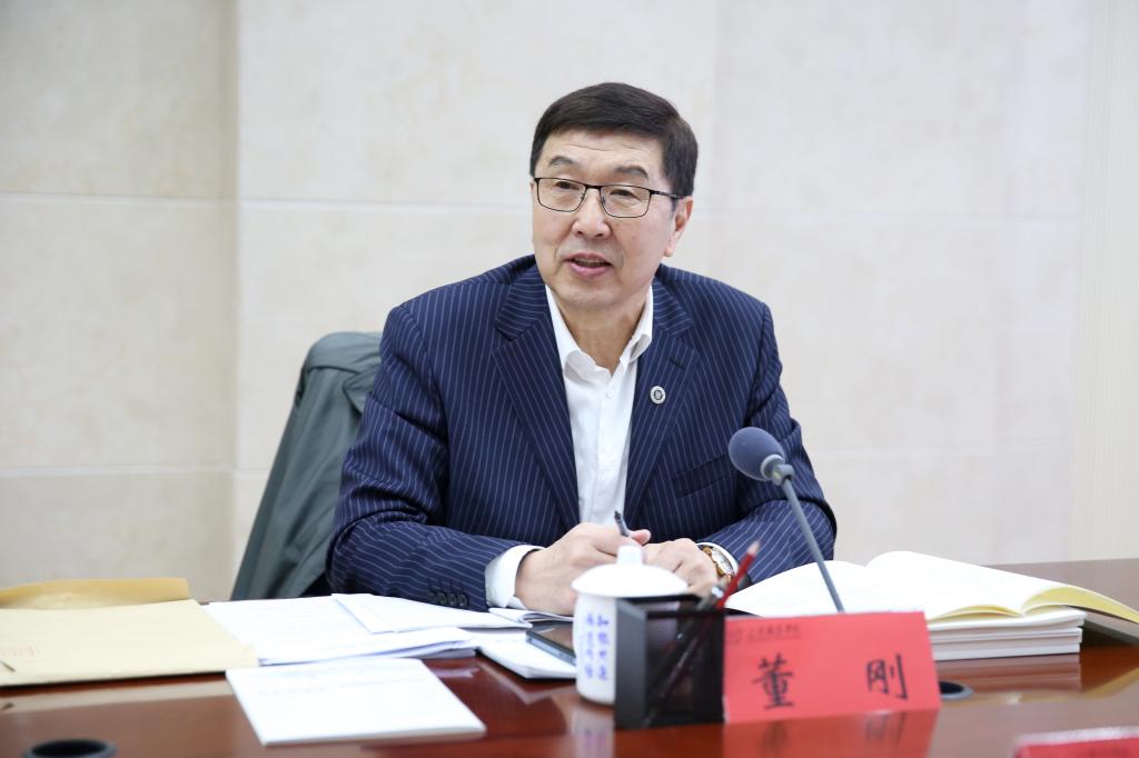 郭培谦代表学校,从绩效目标达成情况、建设任务完成情况、专业群建设主要经验做法、主要贡献和问题与工作打算五个方面作了“双高计划”建设情况汇报。