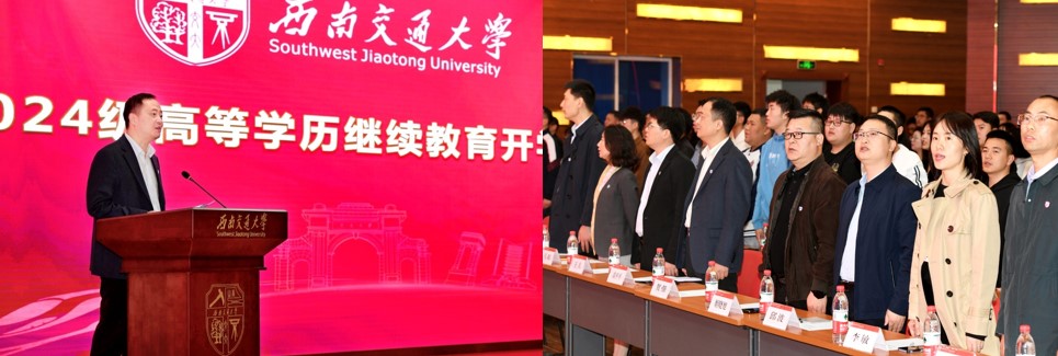 3月30日上午,西南交通大学2024级高等学历继续教育开学典礼以线上线下相结合的方式隆重举行,伟德教学点近百名学员在会议中心观看了开学典礼直播。西南交通大学党委副书记高平平,合作发展处副处长王兵,继续教育学院党总支副书记马琼,副院长贺强、姬晓旭,伟德继续教育学院副院长张霞参加了典礼。