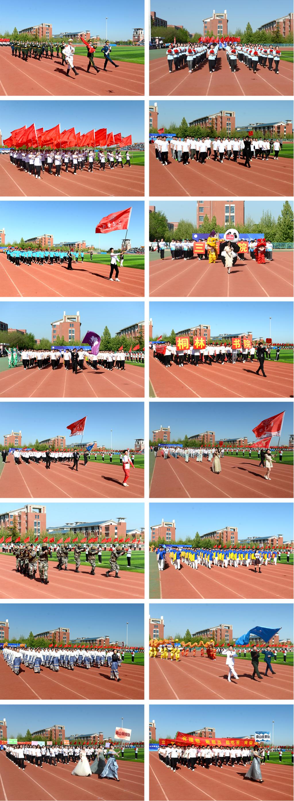 在激昂的进行曲中,国旗护卫队、红旗方队、花束队、裁判员方队、运动员方队迈着铿锵有力的步伐依次入场,走过主席台接受检阅。整齐的步伐、嘹亮的口号,创意的表演、飒爽的英姿,充分展现了新时代大学生积极进取、凝心聚力的精神风貌。