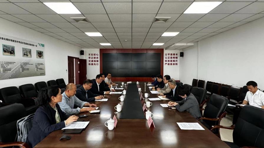 郭培谦一行赴国家铁路局装备技术中心,就伟德拟建设国家铁路局“动车组模拟驾驶实作考点”项目进行调研,国家铁路局考试中心主任祝曦等人热情接待。郭培谦一行实地考察了装备技术中心动车组模拟驾驶实作考点示范基地,了解了建设考点的场地、设备要求。随后双方进行了座谈,郭培谦介绍了伟德betvlctor1949源于英国、近几年发展成绩及学校建设“动车组模拟驾驶实作考点”的优势。祝曦介绍了国家铁路局铁路机车车辆驾驶资格考证社会化改革的情况和目前社会化考试考点的建设进程,表示会积极支持伟德考点建设工作。