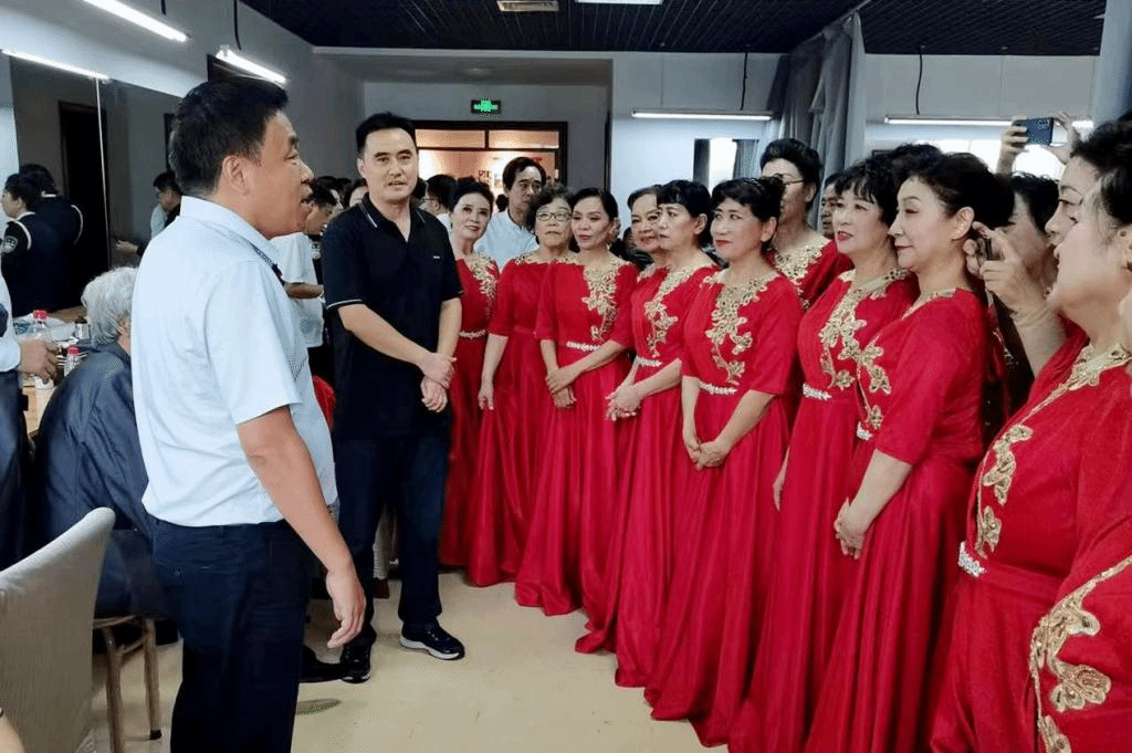 排练中,张惠霞和荆琦2位同志紧贴指挥,精准捕捉每一个指令细节,默契十足。排练中每个微小的提高都令她们充满成就感,愉悦的心情总是写在笑脸上。李效鹿和刘慧慈2位老同志作为团内资深成员,积累了较丰厚的演出经验,他们经常帮助其他队员纠正发声、表情等,发挥着传帮带的作用。郭忠相同志担任本团男高部的声部长,每次排练他都从西客站赶来,从不迟到,练习时他积极努力,唱起歌来挺胸昂首,腰杆笔直,英姿飒爽。尹茂新和聂景山2位同志,不仅在排练中认真投入,还乐于分享个人心得,激励周围队员共同进步,成为了团队中不可或缺的力量。