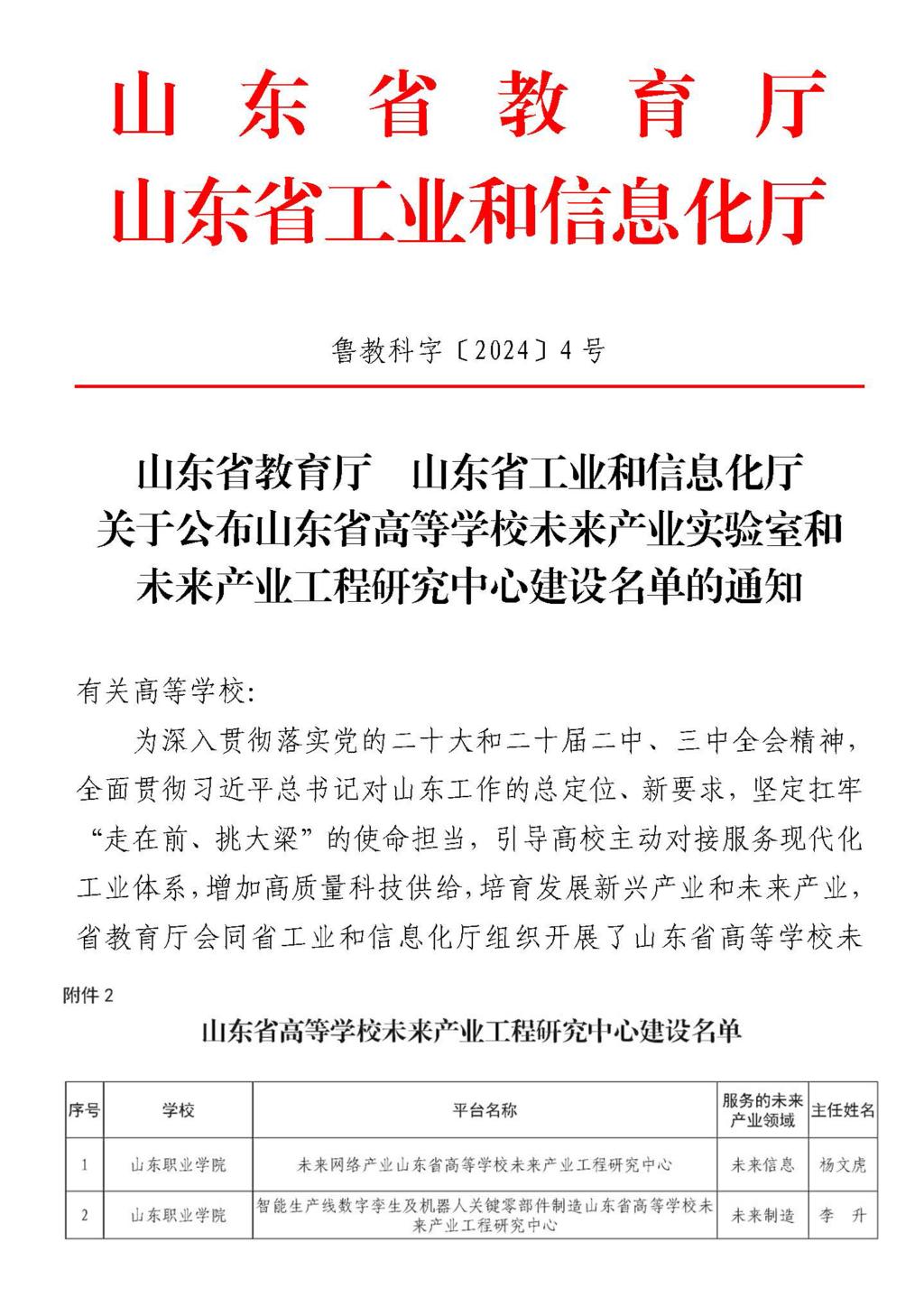 近日,山东省教育厅、山东省工业和信息化厅印发《关于公布山东省高等学校未来产业实验室和未来产业工程研究中心建设名单的通知》,伟德新一代信息技术学院申报的“未来网络产业山东省高等学校未来产业工程研究中心”、智能制造学院申报的“智能生产线数字孪生及机器人关键零部件制造山东省高等学校未来产业工程研究中心”获批立项。