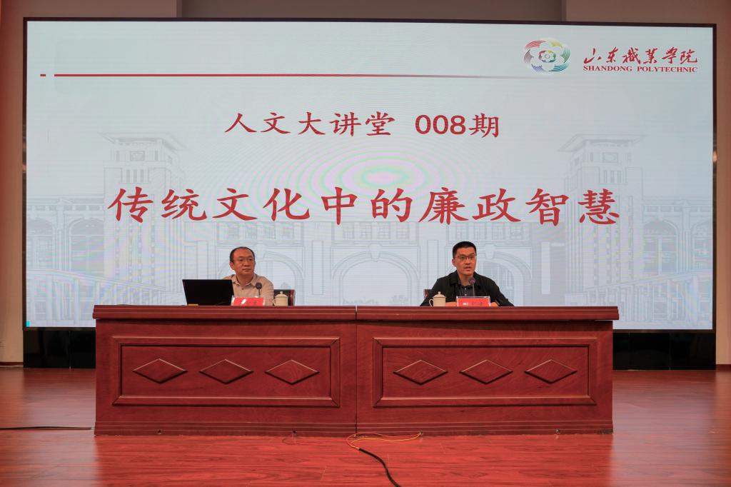 10月17日,济南市文物保护利用中心主任吕智勇做客人文大讲堂,作了题为《传统文化中的廉政智慧》的廉洁讲座,他诠释了中华优秀传统文化的内涵及其新时代要求,指出中华优秀传统文化具有以儒为主导、多向多元的特点,从正己修身、忠孝齐家、礼法治国、执政为民、崇廉拒腐、慎独慎微、自警自省、立德配位八个层面,详细解读了儒家经典名篇名句中蕴含的廉政智慧。最后,勉励同学们要树立远大目标,将学到的廉政智慧内化于心、外化于行,不仅要在学业上追求卓越,更要在未来的工作和生活中秉持廉洁自律的原则,成为新时代的栋梁之才,为社会的发展和进步贡献自己的力量。讲座内容深入浅出、干货满满,赢得了现场师生的阵阵掌声。