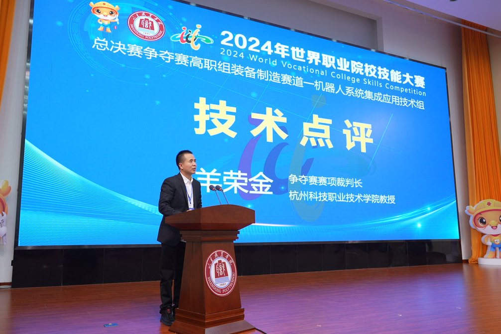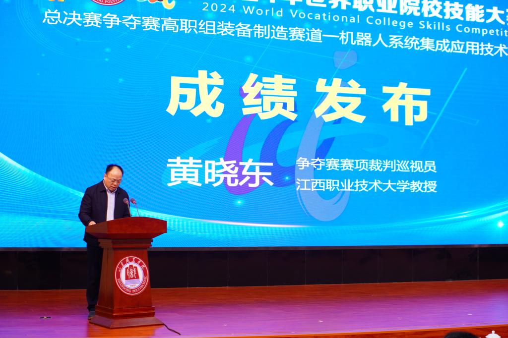 11月1日,2024年世界职业院校技能大赛总决赛争夺赛高职组“机器人系统集成应用技术”赛项成绩发布会暨闭赛式在伟德图书行政楼西报告厅举行,党委书记、赛区执委会委员赵凤文,赛项裁判长羊荣金、裁判巡视员黄晓东、纪律监督组长纪付荣等出席。各代表队领队、参赛师生等参加闭赛式。成绩发布会暨闭赛式由副院长李新华主持。