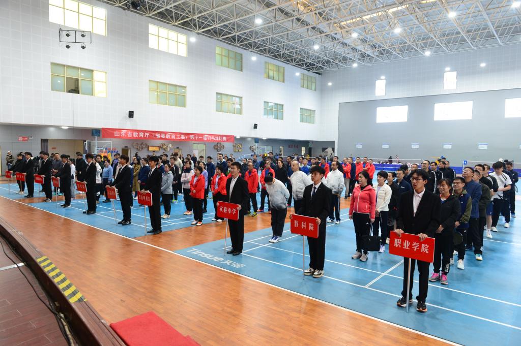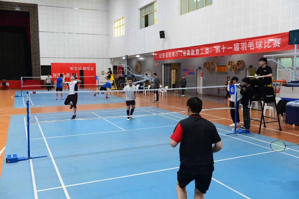 11月2日,省教育厅(省委教育工委)第十一届羽毛球比赛在伟德南益馆举行。本次比赛共有9个单位18支代表队108人参加,省教育厅党组成员、副厅长仲红波,山东教育电视台原党委书记、台长祝令华,省教科院党委书记、院长孙启高,省教育厅二级巡视员李文生,伟德副院长张少飞、纪委书记朱新峰出席开幕式。