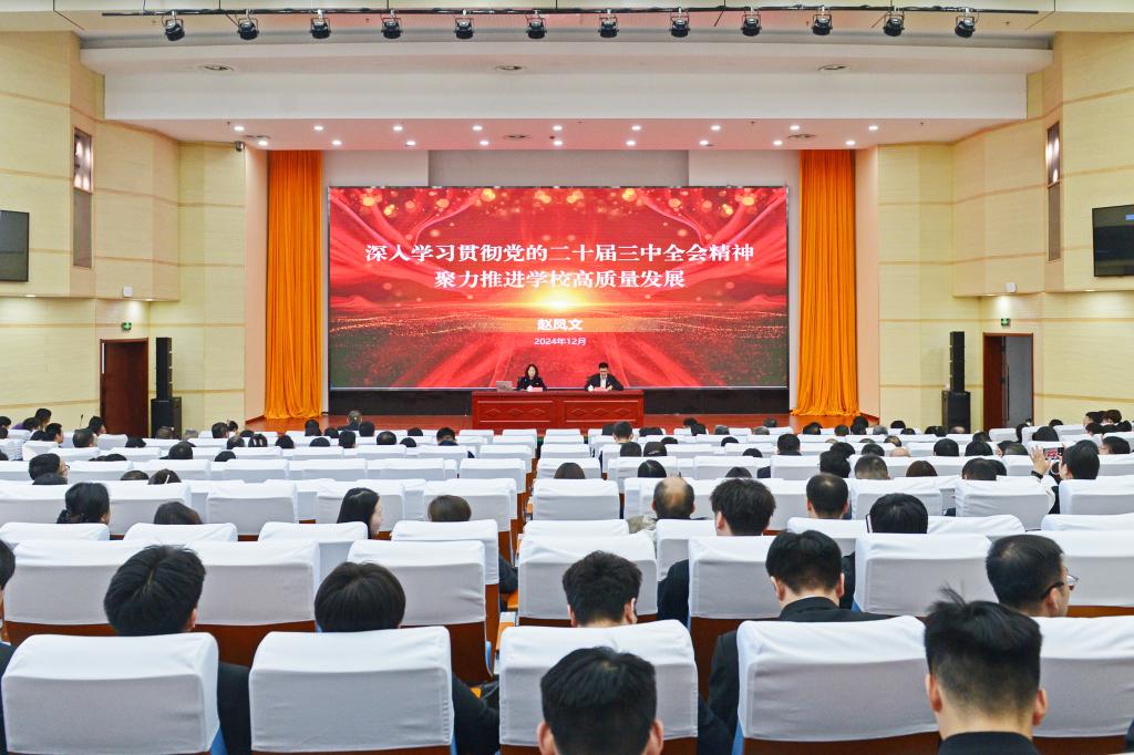 为深入学习贯彻党的二十届三中全会精神,更好地理解和把握二十届三中全会精神的丰富内涵和精神实质,12月5日下午,党委书记赵凤文在西报告厅专题宣讲党的二十届三中全会精神。宣讲会由纪委书记朱新峰主持。