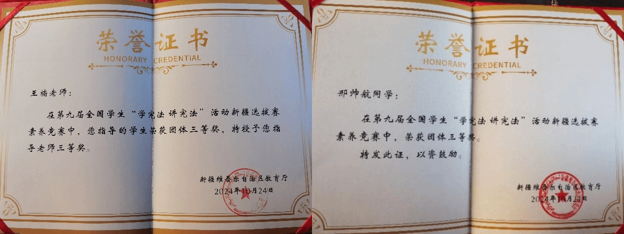 近日,第九届全国学生“学宪法 讲宪法”活动新疆选拔赛获奖名单公示。伟德援派喀什职业技术学院教师王楠指导的学生邢帅航在众多参赛选手中脱颖而出,以第8名的成绩荣获自治区三等奖,实现了该校在此项赛事上“零”的突破。同时,王楠获得“三等奖指导教师”荣誉称号,也成为本批山东援疆教师中的首位获奖者。