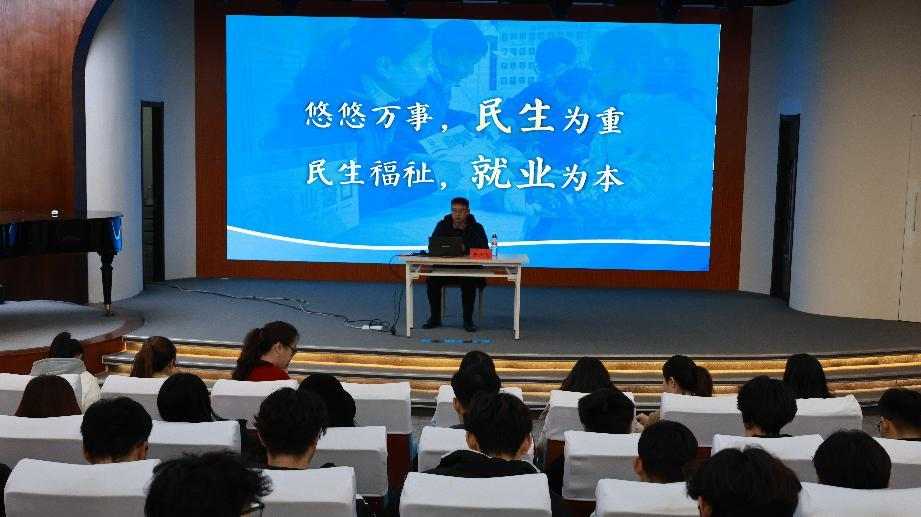 为帮助师生更好地了解就业形势,提升就业竞争力,12月11日,副院长张少飞在3号教学楼音乐厅为天佑书院80余名师生讲授思政课。