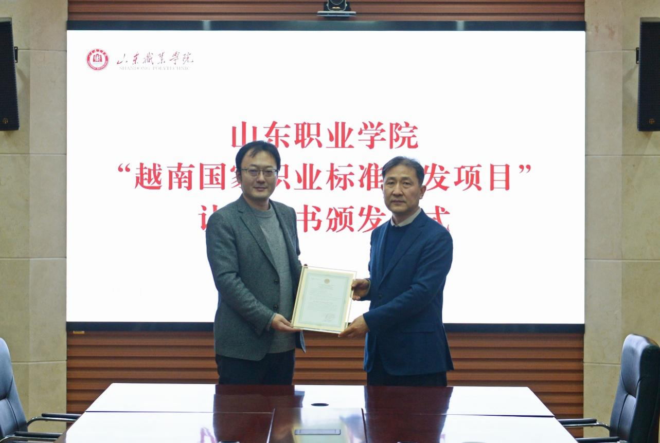 仪式上,合作机构向学校正式转递了由越南劳动荣军社会部颁发的越南国家职业标准开发(铁道机车操作与维护技术员3级、铁路工程技术员3级)认证证书,并移交相关项目资料。随后与会人员就项目进展情况进行了深入交流,并探讨了学校与越南及东盟其他院校开展进一步合作的具体实施方案。