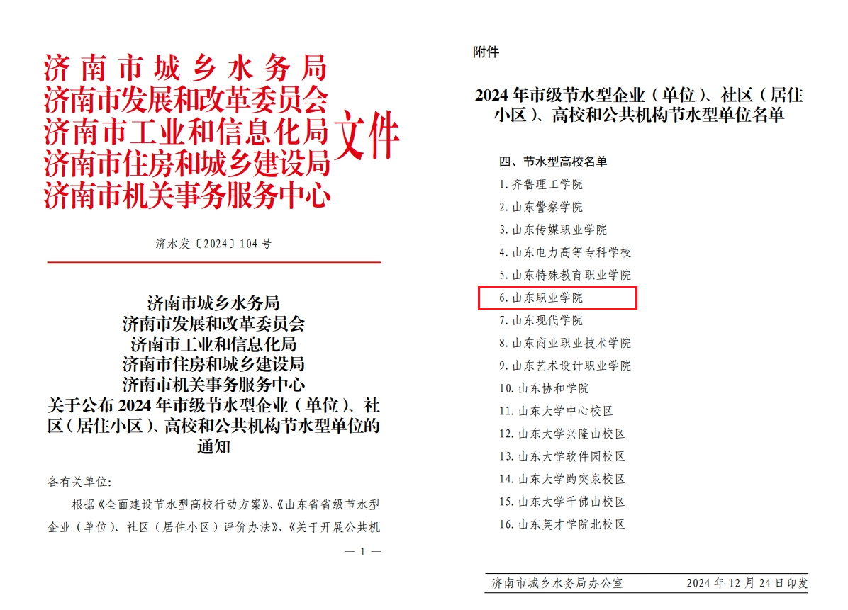 近日,由济南市城乡水务局、市发展和改革委员会、市工业和信息化局、市住房和城乡建设局及市机关事务服务中心共同组织的2024年度节水型单位评选结果公布。伟德被正式授予“济南市节水型高校”的荣誉称号。