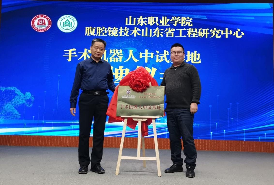 李新华和田兆辉共同为“未来制造产业工程研究中心-齐鲁医院手术机器人研发中试基地”揭牌。
