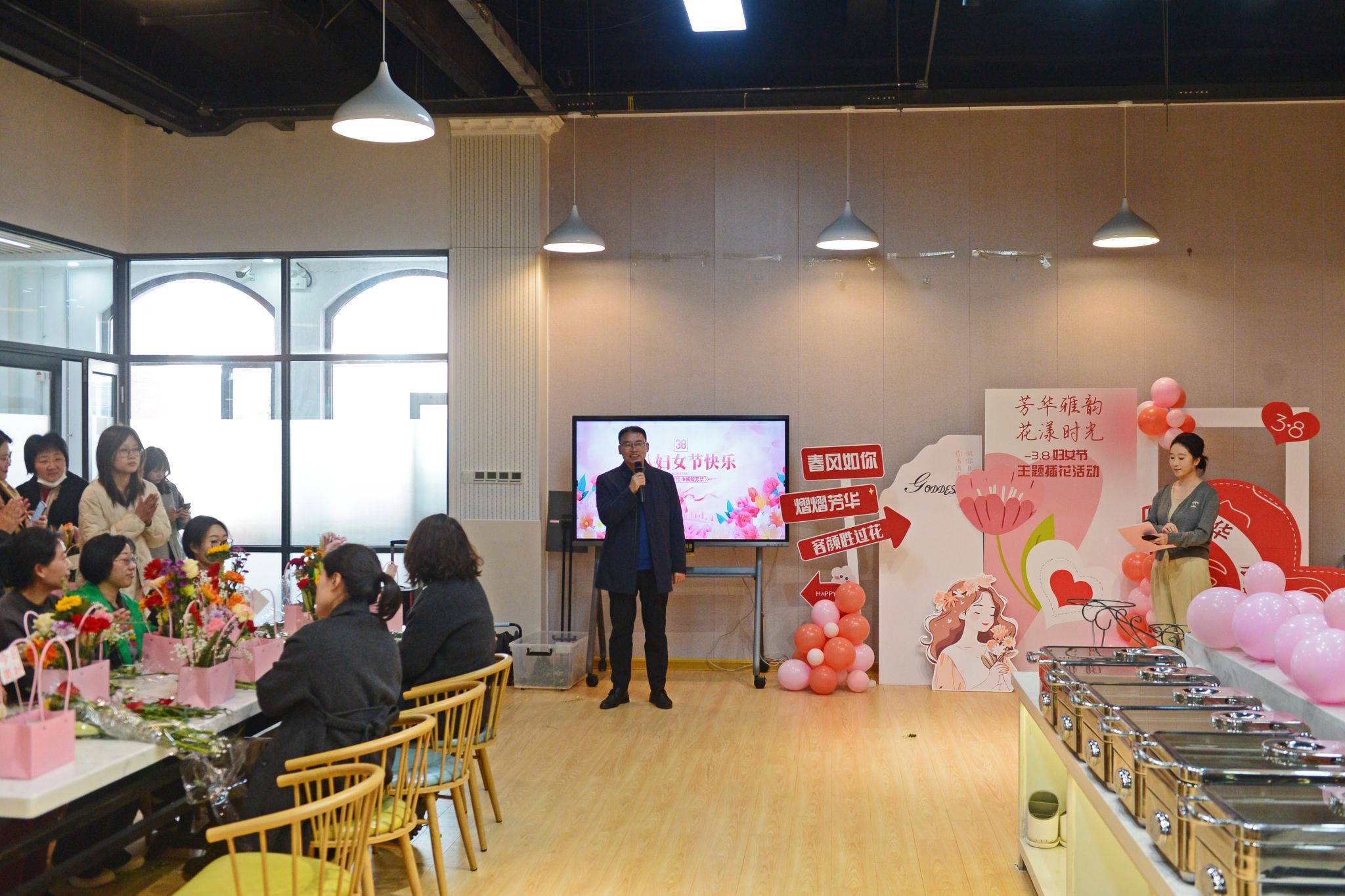 为庆祝第115个“三八”国际劳动妇女节,丰富女教职工精神文化生活,3月6日下午,学校工会(妇委会)联合易安书院精心策划并举办了“芳华雅韵,花漾时光”主题插花活动。副院长张少飞出席活动并讲话。