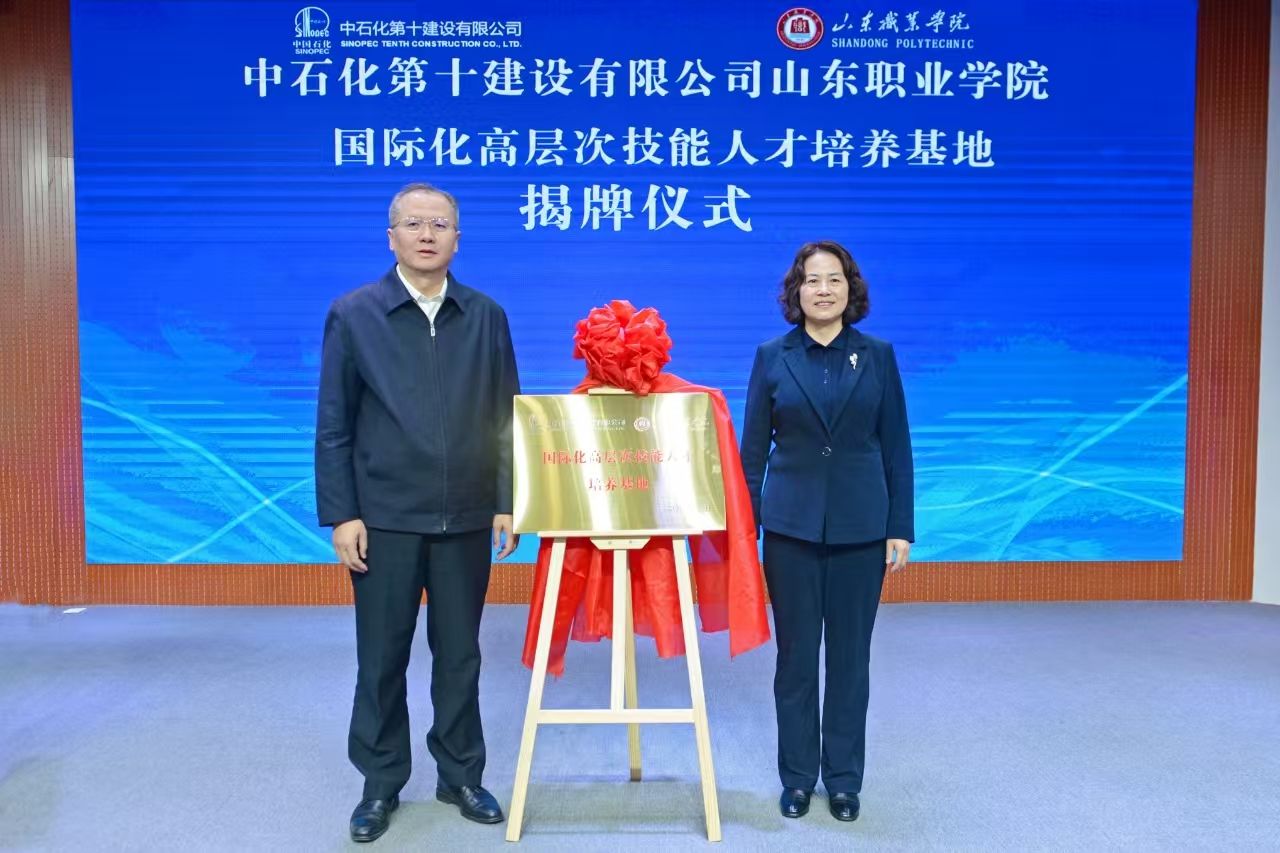 赵凤文、王毅代表双方为“中石化第十建设有限公司伟德betvlctor1949源于英国国际化高层次技能人才培养基地”揭牌。