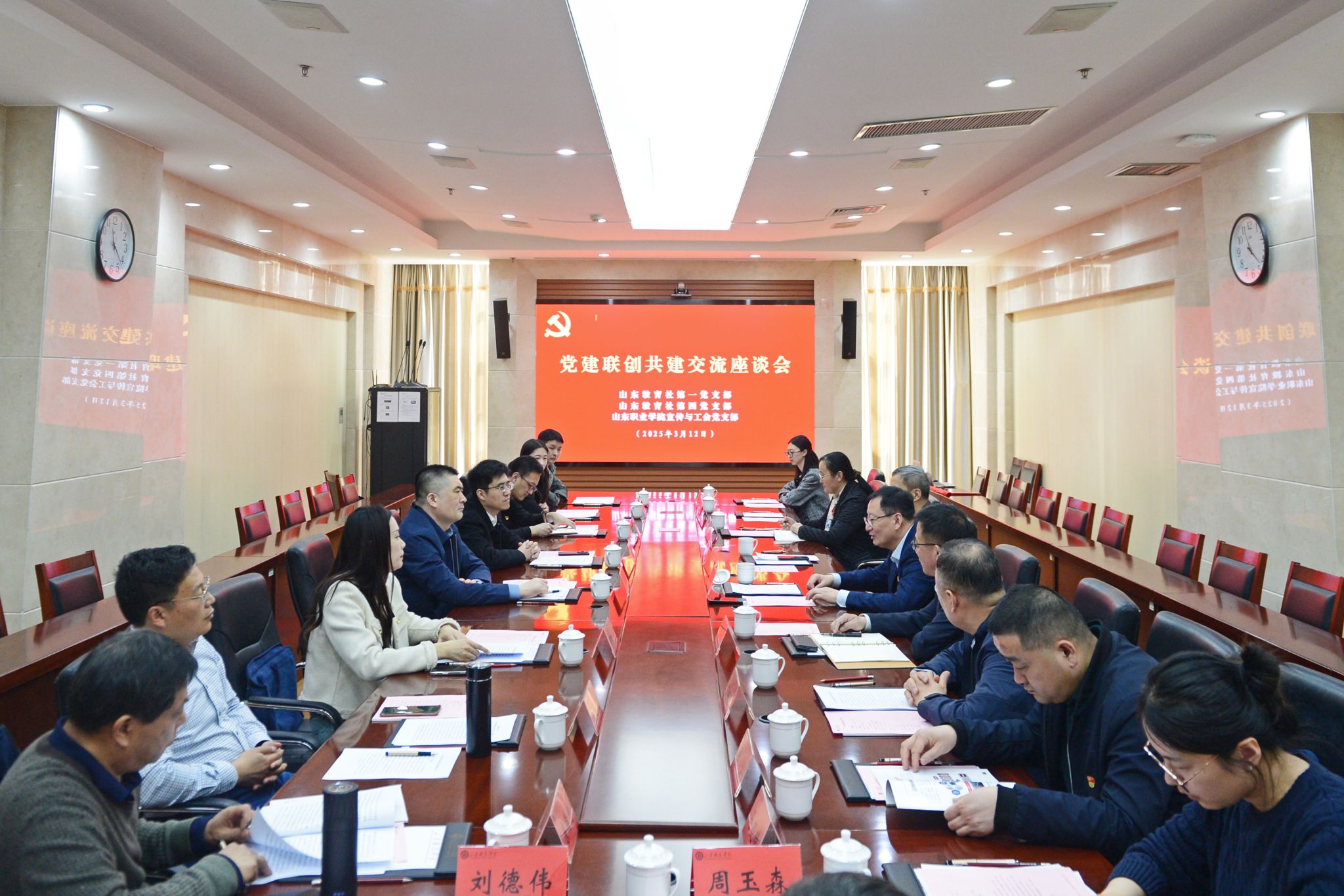 3月12日上午,山东教育社第一党支部、第四党支部一行到访伟德,与伟德宣传与工会党支部开展党建联创共建活动。山东教育社党总支书记、社长张继梁,伟德党委副书记、院长郭培谦出席活动。