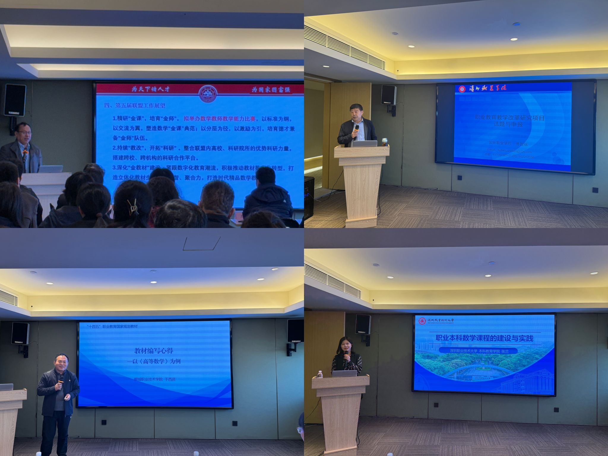 会议邀请国务院政府特殊津贴专家傅智端,聊城职业技术学院教授于西昌、深圳职业技术大学教授张兰分别围绕职业教育“教学改革研究项目选题与申报”“数学教材编写”“职业本科数学课程建设与实践”主题作报告,不仅为教师提供从选题设计到成果落地的全流程申报指导,而且通过课程体系重构、教材改革等推动数学教育与人工智能、人文素养提升深度融合,突破学科壁垒,为培养高素质人才构建新范式。