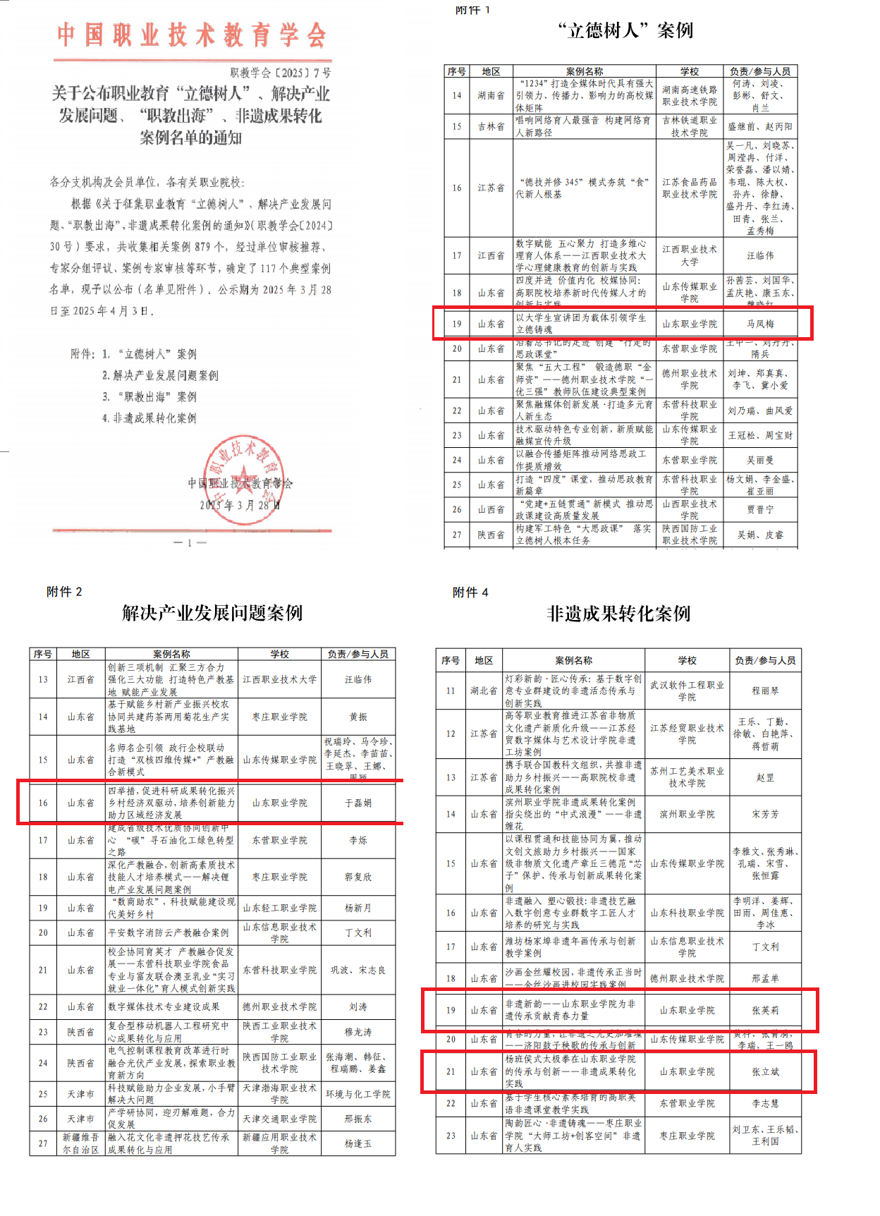此次中国职业技术教育学会共征集职业教育“立德树人”、解决产业发展问题、“职教出海”、非遗成果转化相关案例879个,经过单位审核推荐、专家分组评议、案例专家审核等环节,确定了117个典型案例名单。其中,伟德入选“立德树人”案例1项、解决产业发展问题案例1项、非遗成果转化案例2项。