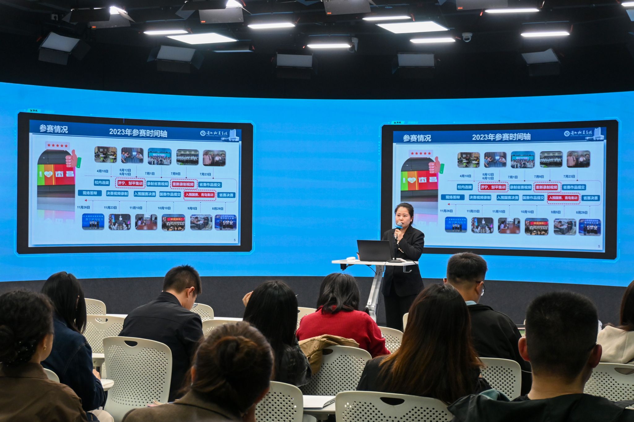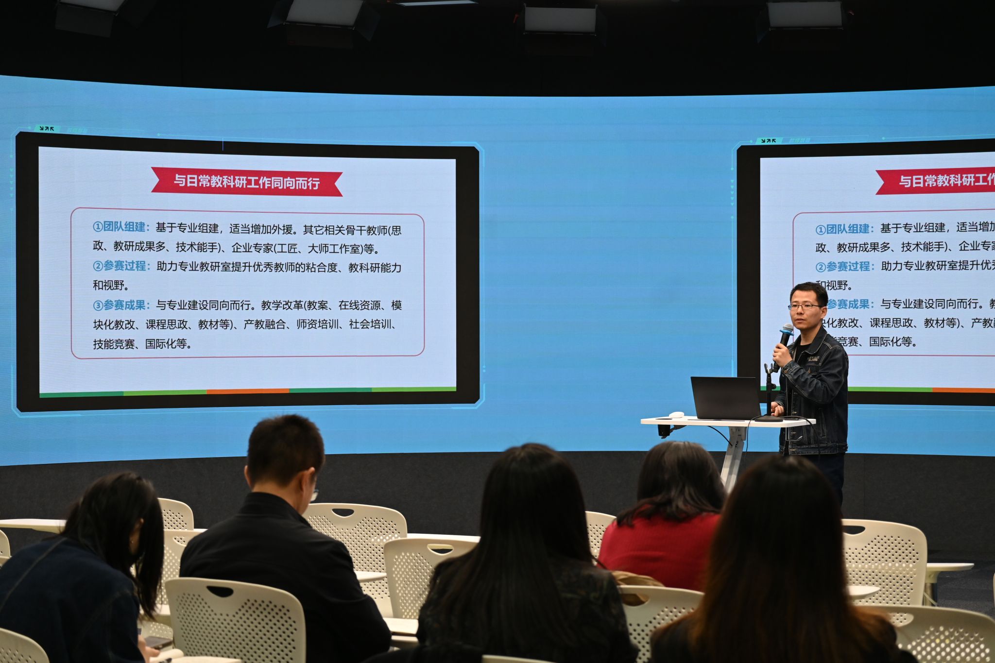 刘晓璐以《教学能力大赛全景分析与精准落地实践思考》为题,从教学能力、技术、技巧等方面进行了全面讲述,分享了团队在比赛中打磨提升、在历练中蜕变成长的宝贵经验。