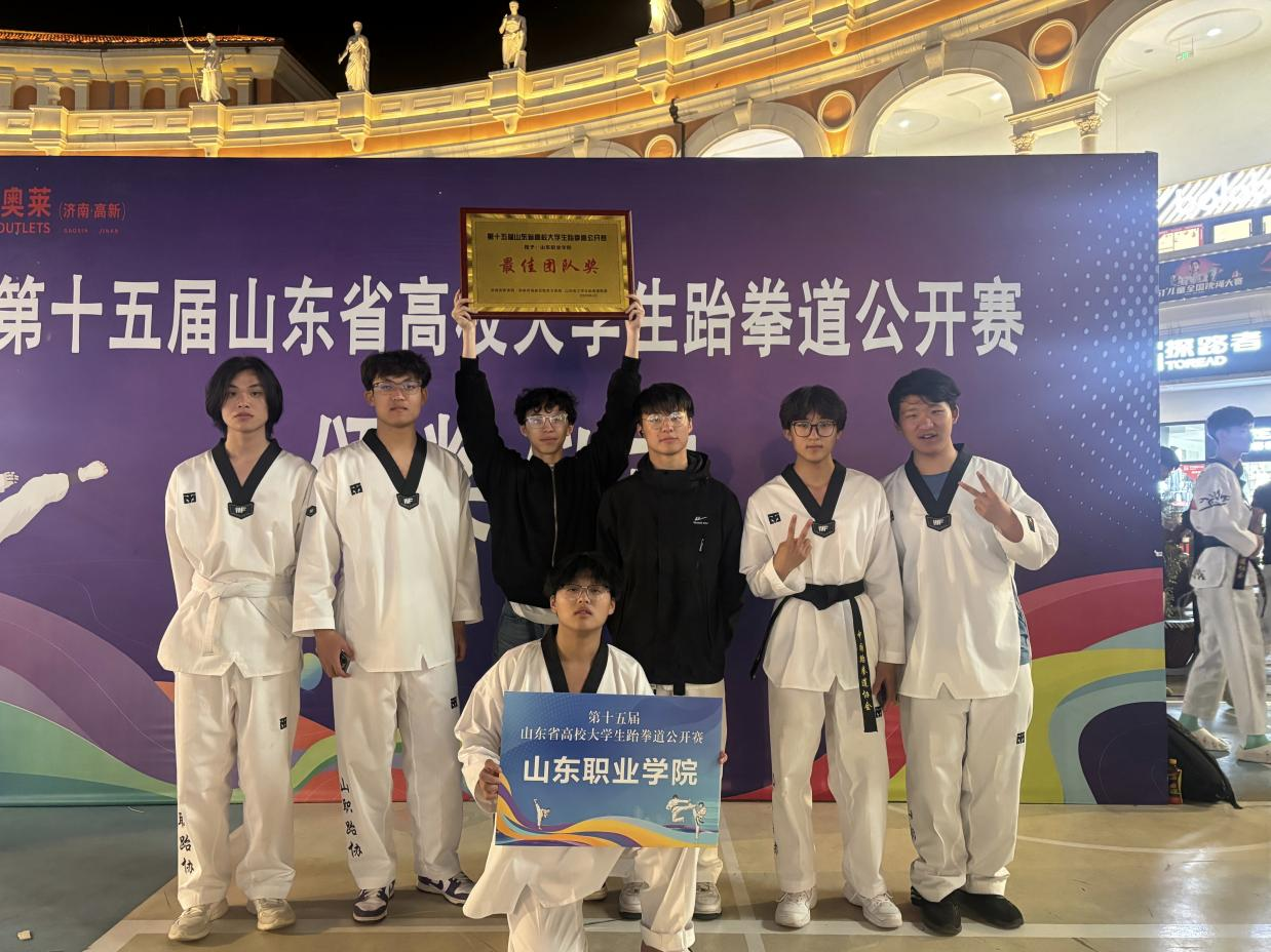 4月19日,第十五届山东省高校大学生跆拳道公开赛在济南落幕。伟德取得4金2银8铜的优异成绩,获赛事最佳团队奖。