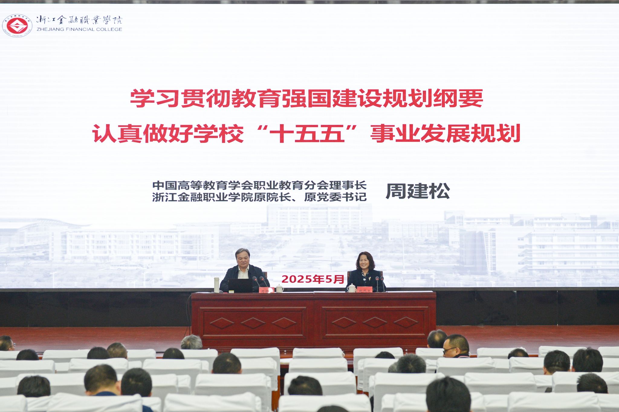 周建松以“学习贯彻教育强国建设规划纲要、认真做好学校‘十五五’事业发展规划”为题,从解读《教育强国建设规划纲要》精神要义入手,深刻阐释了学校编制发展规划的基本理念,分析了制定规划的基础条件和注意事项。他结合职业教育的特点和关键任务,深入探讨了“十五五”规划编制基本方法、时间节奏、目标愿景、重点布局、主要关系、内容协调、规范文本、呈现形式等,为学校规划编制提供了清晰指引。